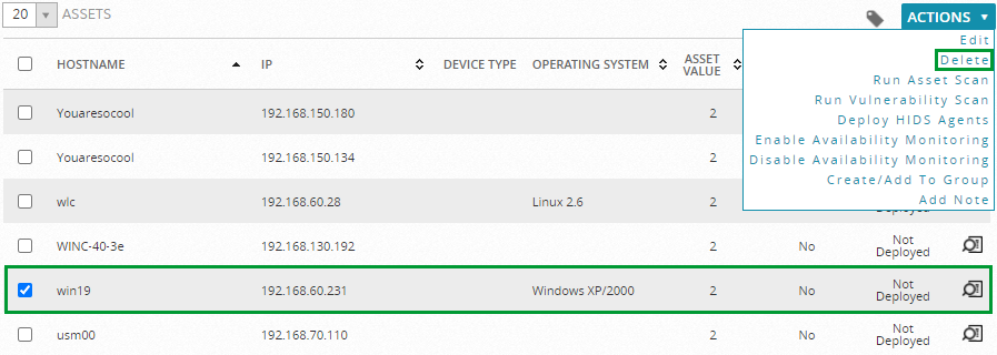 Select the asset(s) you want to delete. For assistance, see Selecting Assets in Asset List View.